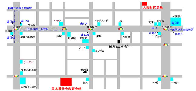 日本橋社会教育会館の集会室が確保できない場合、人形町区民館などに変更の場合もあります。
